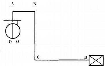 如圖2所示的鐵路油槽車上部卸油工藝,由油槽車底部極限位置0—0截面與泵吸入管道任一點(diǎn)x—x截面列能量平衡方程:P/r+b/2g+Z?=p/r+2/2g+Z?+△h?-,(3)式中,pe——油槽車液面壓力,也即大氣壓力,Pa;v?——油槽車液面下降速度,可忽略;v,——計(jì)算點(diǎn)液體的流速,m/s;p?——為油槽車底部和管道計(jì)算點(diǎn)的標(biāo)高,m;△h?-;——由裝卸鶴管吸入口至管道計(jì)算點(diǎn)的水力損失,m。圖2中,A、B、C分別為裝卸鶴管或管道的拐彎點(diǎn),D為泵入口法蘭處。顯然,管道B點(diǎn)和D點(diǎn)易發(fā)生氣阻。