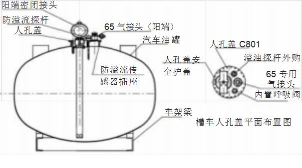 d)罐車進(jìn)油管直接固定安裝于人孔蓋上,避免鶴管進(jìn)出人孔,實(shí)現(xiàn)油罐車密閉和浸沒式發(fā)油,避免油品噴濺產(chǎn)生靜電隱患。