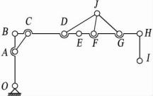 根據(jù)使用工況,為適用于底盤行駛,鶴管初始位置為折疊水平放置,其桿OB與桿BE重合,桿BE與桿EH重合,桿HI為垂管,采用手動折放,在計算中不考慮。在設計中,可先根據(jù)鶴管作業(yè)范圍初步選型,確定各節(jié)長度,結合現(xiàn)有成熟液壓油缸的尺寸,在Solid-Works軟件的草繪中進行模擬計算。在模擬計算后可初步定出幾種設計方案,供后分析計算。